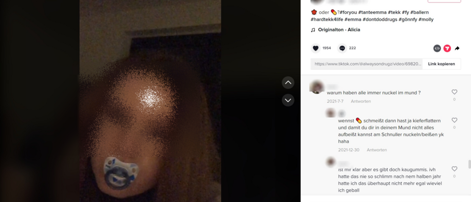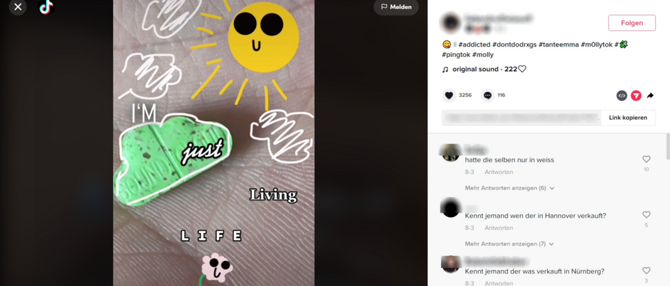 Im Laufe der Recherchen löschte TikTok einen Teil der von den Reporterinnen erwähnten Clips. Eigene Suchen auf TikTok nach bestimmten Hashtags zeigen, dass Posts und Kommentare über Drogenkonsum und -beschaffung weiterhin offen zugänglich sind (Stand: 26. August 2022):