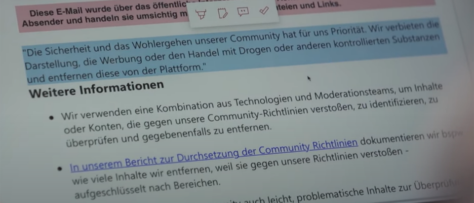 Die Funk-Reporterinnen wollten von TikTok wissen, warum Drogen-Clips unzensiert gepostet werden dürfen. Nach zwei Fristverstreichungen kam folgende Antwort: